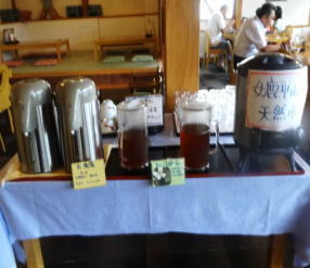 テラスではハーブを栽培し、体に優しいお茶や天然水を用意していて自由に飲めます