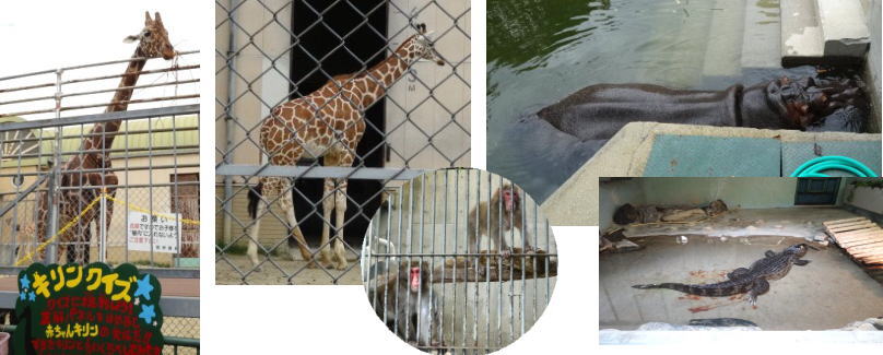 アミメキリン 母親 サクラ と5月に生れた赤ちゃんの ミズキ(雌) こんなに大きくなりました。 右上:水にもぐったきりなかなか顔を出してくれないカバさん