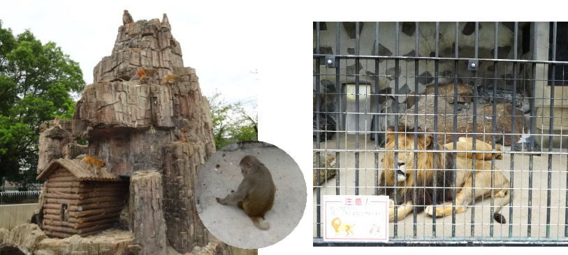 猿山のおサル達 山の頂上で見張っているのがボスザルでしょうか? 百獣の王ライオンは動物園の花形ですね。威厳があります