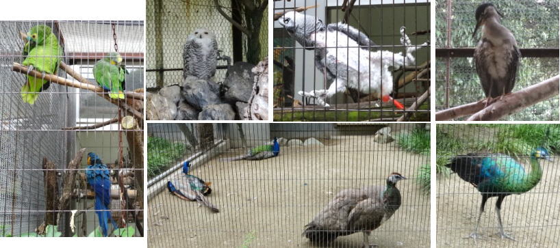 このコーナーにはフクロウ、ハヤブサ、ワシ、孔雀、オウムなどの鳥類がいました。さすがに孔雀は綺麗です