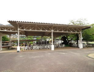 園内の中ほどには中央広場があり、ステージでは時折催し物も開催されています。お弁当も持ち込みOKです